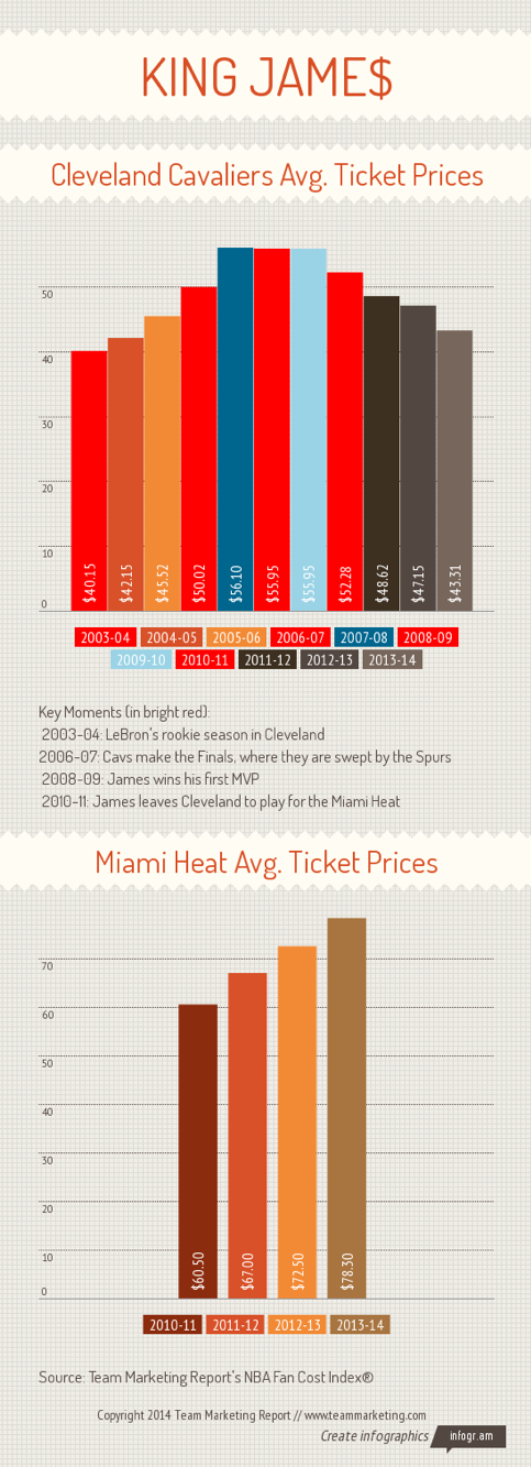 For the 2002-03 NBA season, the average non-premium season ticket to a very non-premium Cleveland Cavaliers team was $38.52, according to the NBA Fan Cost Index.